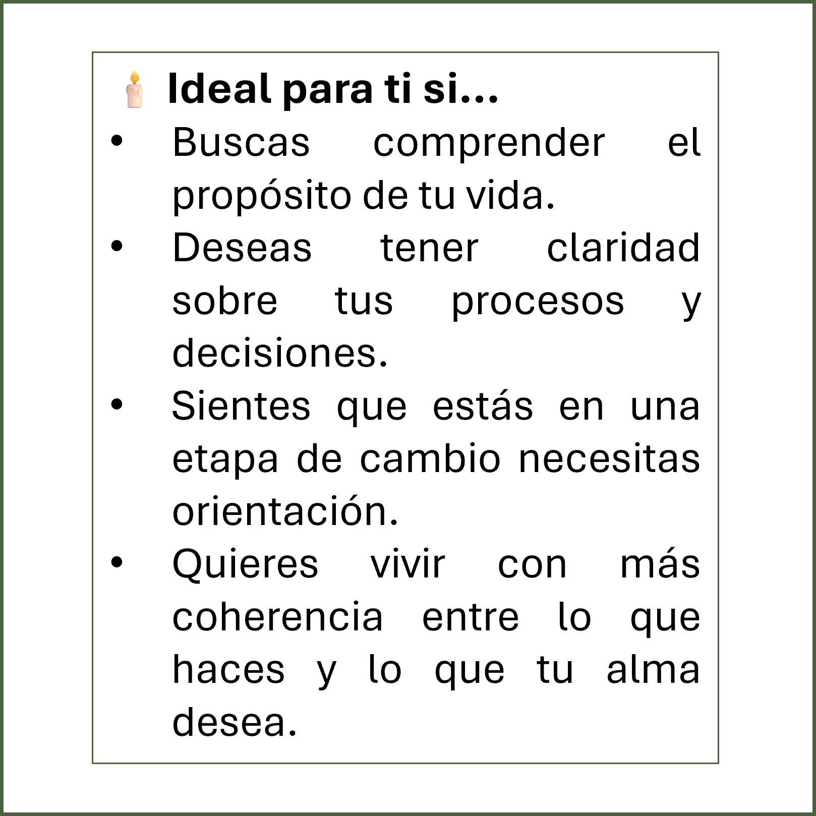 Tu Sendero de Vida es la ruta que tu alma eligió recorrer en esta existencia. A través de la numerología espiritual, se interpretan los números que revelan el propósito central de tu encarnación, los aprendizajes que viniste a integrar y los dones que te acompañan en tu evolución. Esta lectura te brinda claridad sobre tu camino, te ayuda a entender los ciclos por los que atraviesas y te muestra cómo alinearte con la misión que tu alma eligió antes de nacer.